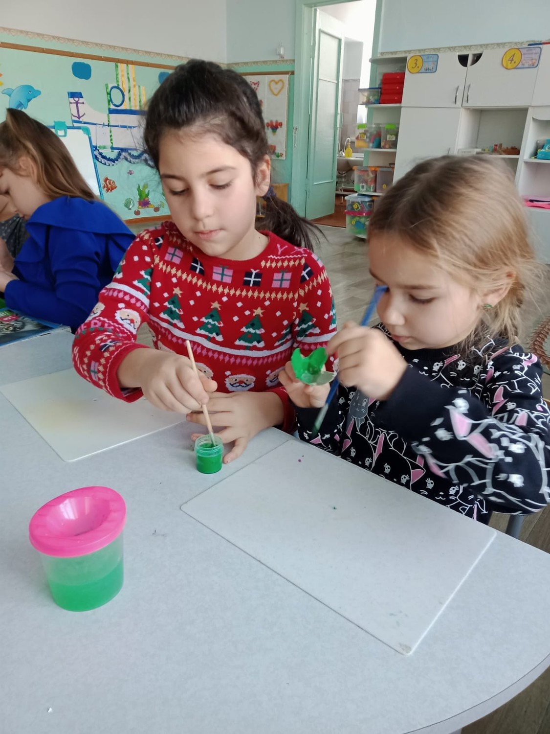 В средней группе воспитанники делали аппликации главной новогодней красавицы - Ёлочки.