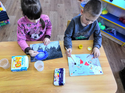 В старшей группе дети очень ждут Новый год. На занятиях рисуют рисунки на тему "Зимняя фантазия".