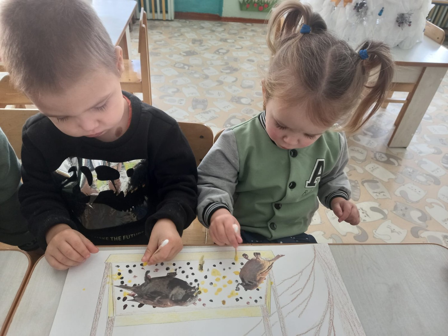 В нашем детском саду "Ромашка" идёт активная работа над проектом "Новогодний калейдоскоп". Важное место в данном проекте занимает изучение и сохранение традиций празднования Нового года, что помогает удовлетворить познавательный интерес детей к этому празднику. В ходе проекта дети узнают, где живёт Дед Мороз, изучают новогодние традиции разных стран, изготавливают в мастерской Деда Мороза новогодние поделки: ёлочные игрушки, нашу главную красавицу - ёлочку, снеговичков, также с большой теплотой и любовью дети смастерили символ нового года "Кролика". Не забыли и о братьях наших меньших - детки с родителями изготовили кормушки для птиц, теперь птички могут полакомиться угощением из новых кормушек.