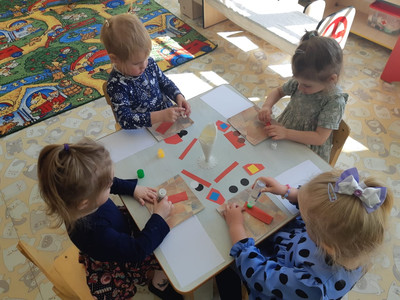 Дети младшей группы делали аппликации ко дню пожарной охраны. | |