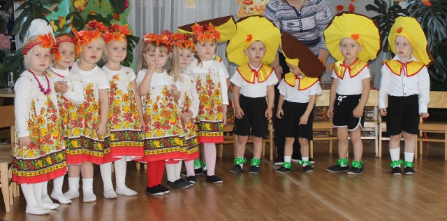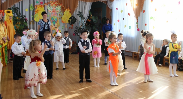 В каждой группе был свой праздник: к ребятишкам младшей группы приходила Осень (О.А.Кучма) со своим волшебным сундучком; в средней группе в гостях побывала Осень (Ю.Н.Михеева) и Подсолнушка (Е.А.Морочек), которую ребята спасли от Вороны (А.С.Рожкова); дети старшей группы пригласили к себе на праздник Пугало Огородное (Е.А.Дудко) и Осень (Е.С.Бортулева). А дошколята подготовительной к школе группы, по сложившимся обычаям в детском саду, сами стали актерами и показали музыкальную театрализованную постановку «Муха-Цокотуха» и помогла им в этом Осень (Л.А.Шпак), которая была рассказчицей сказки. А по ее окончанию ребятишки повеселились с домовенком Кузей (Е.С.Бортулева). В конце утренников все ребята получали от Осени подарки - румяные яблочки с пожеланиями быть такими же веселыми и здоровыми. Все праздники были подготовлены и проведены под руководством музыкального руководителя Е.Н.Маслюк. Особую благодарность хочется выразить родителям младшей группы (воспитатель Е.А.Дудко) за пошив нарядов «рябинок» и «грибочков» и сказать спасибо родителям, принявшим участие в организации праздников - подготовку красивых костюмов, заучивании с детьми стихов и песен. | |